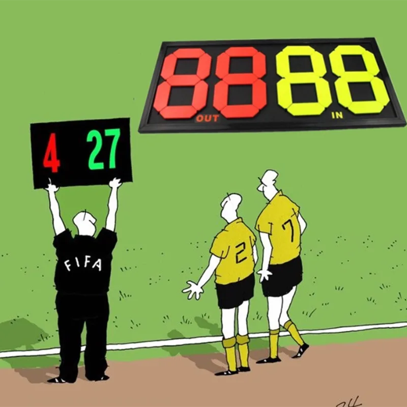 Vergeleken met vereenvoudigde tweecijferige wisselkaarten voldoet het 4-cijferige voetbalvervangingsplaatje beter aan de professionele behoeften van het moderne voetbal. Het dient niet alleen als hulpmiddel voor het weergeven van informatie, maar ook als symbool van orde en eerlijkheid in het spel. Elke keer dat een vervangingskaart wordt opgestoken, is dit een uitgebreide weerspiegeling van tactische aanpassingen, kijkervaring en professionele sfeer.